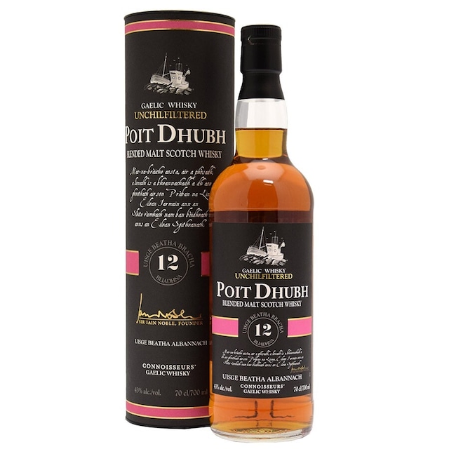 この上質な12年モルトウイスキーは、エレガントで滑らか、甘みとピート香のバランスが良く、長く滑らかでスモーキーな余韻を与えてくれます。 製造元のプラバン・ナ・リンネ社は1976年スカイ島に設立された会社です。 数種類のモルトをブレンドした、ヴァッテドモルト・ボトラーズウイスキーです。 主要なキーモルトのひとつにタリスカーがあると言われています。 ポッチゴーは、ゲール語で「密造酒」を意味し、スコットランドのハイランド地方と島々のゲールタックの歴史を通じて伝説となった、輝かしい密造酒づくりの伝統を称えて名づけられたものです。この密造酒は、最も尊敬されるウイスキーの原料として、舌の肥えた愛好家たちから高い評価を得ています。 【テイスティングノート】 色:黒褐色 香り:ミディアムボディ、ソフトなスモーキーさ、甘草のタッチ、わずかに柑橘類と潮の香り 味わい:スムースでドライな味わい。ピート香と甘みのバランスが良い 余韻:長く、滑らかでスモーキー。タリスカーらしい円やかなピートが楽しめる